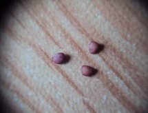 Berry, usually purplish black, smooth, shining, seed-discoid, yellow, minutely pitted. |
