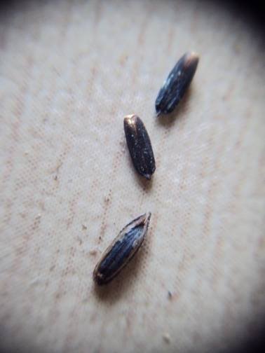 A spear shaped, seeds contained within black fruit, which is 4 mm long and 1.5 mm wide, small reddish-purple to deep blue flowers that grow along tall bracts that are favored by butterflies. |