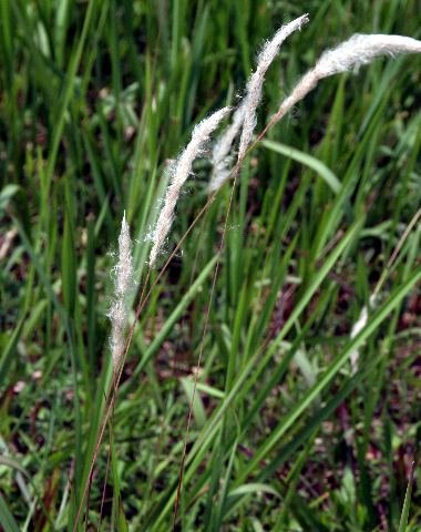 Panicle, silvery, spikelet, cylindric, very dense. Fruiting panicles silvery white. Spikelets lanceolate. Grains small oblong. |