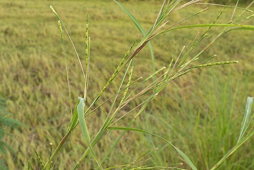 The inflorescence is a jointed, cylindrical raceme, 1-6 inch long. Under favorable conditions, itchgrass starts producing seeds 6-7 weeks after emergence. Seed production continues throughout the growing season. Leaf blades are long, wide and flat. Itchg |